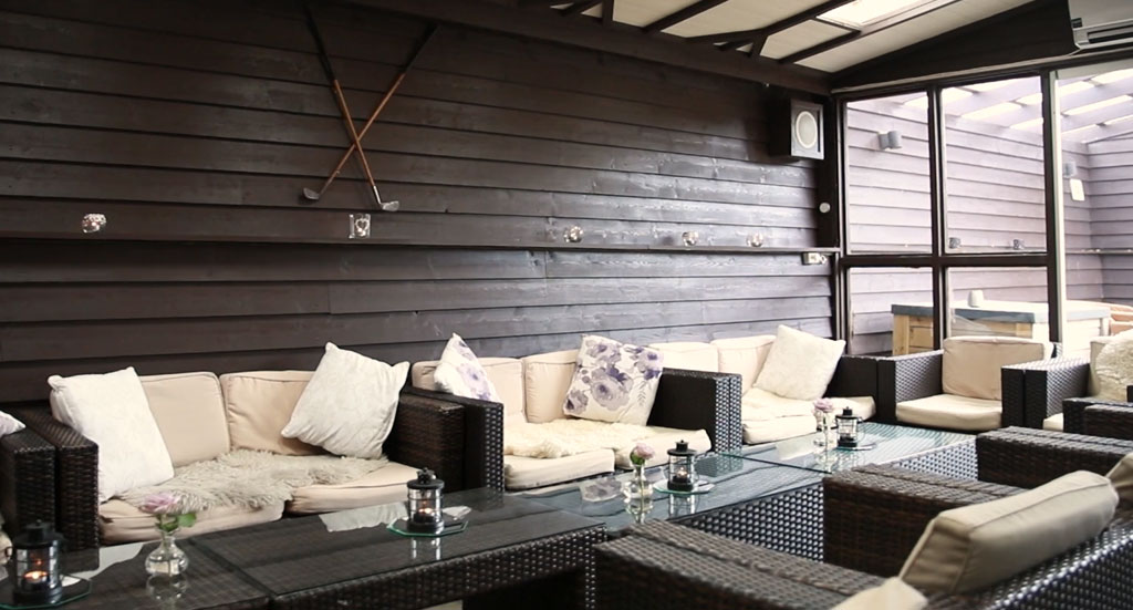 På utsiden av hagestuen har vi sittegrupper til deilige sommerkvelder.
